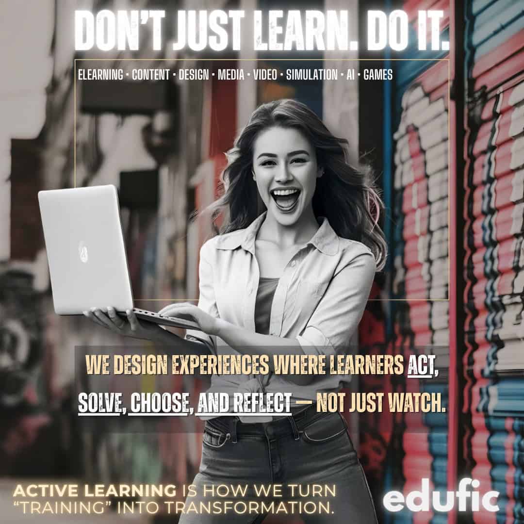 #CustomLearning #SeriousGames #SoftSkills #LMS #TrainingSolutions #OnlineLearning #LifelongLearning #Gamification #CorporateTraining #EdTech #GenerativeAI #ContentCreation #InstructionalDesign #OnlineCourses #EducationForAll #LearningJourney #Elearning #EduficDigital #Edufic