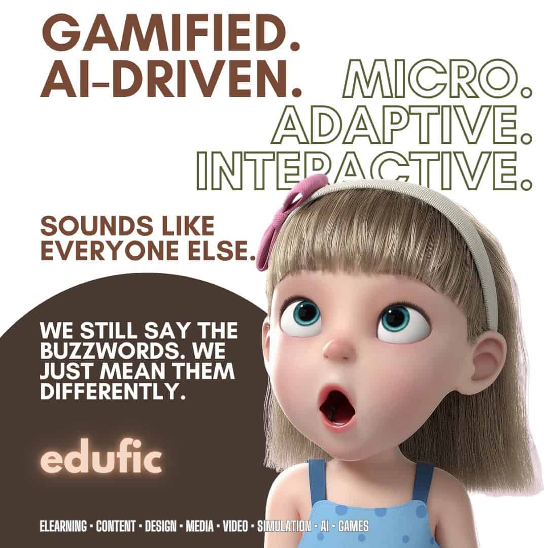 #CustomLearning #SeriousGames #SoftSkills #LMS #TrainingSolutions #OnlineLearning #LifelongLearning #Gamification #CorporateTraining #EdTech #GenerativeAI #ContentCreation #InstructionalDesign #OnlineCourses #EducationForAll #LearningJourney #Elearning #EduficDigital #Edufic www.edufic.com @eduficdigital